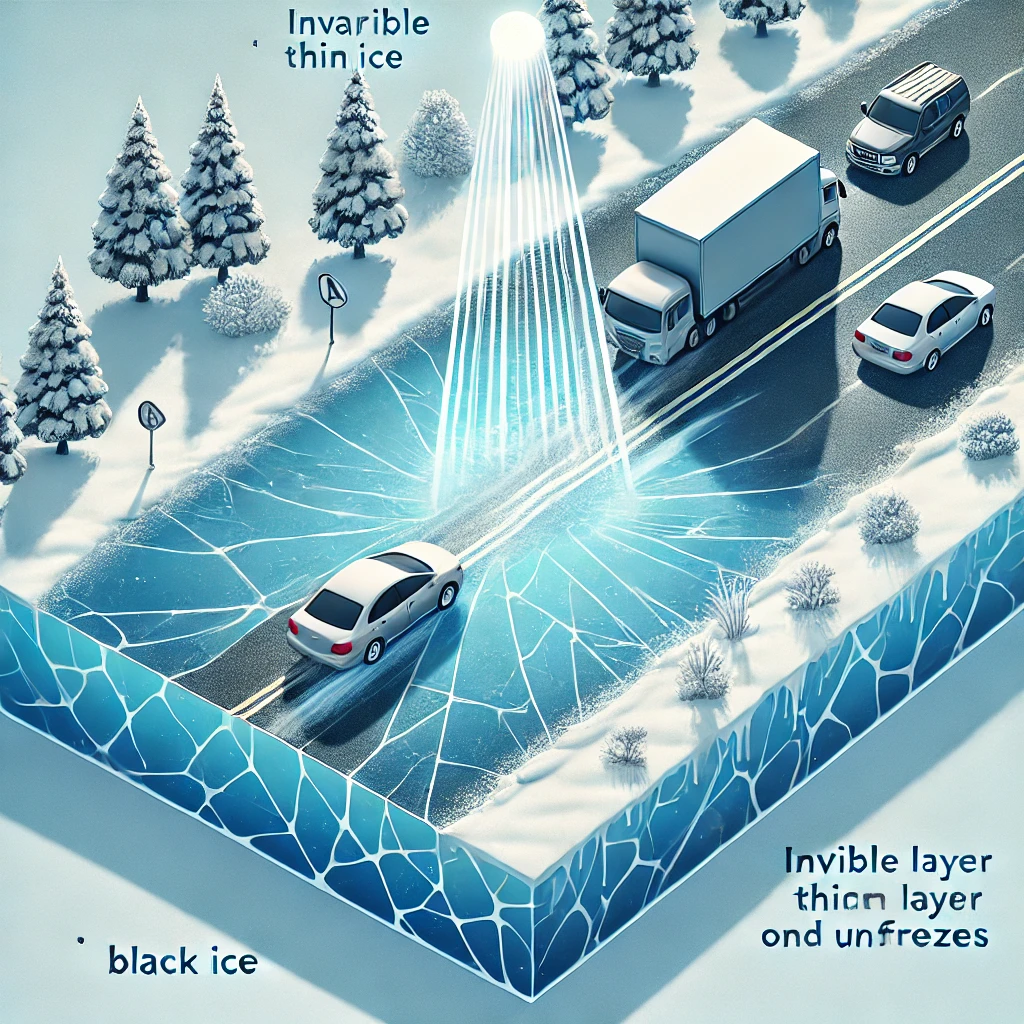 블랙아이스(Black Ice)는 도로 위에 형성되는 얇고 투명한 얼음층으로, 일반적인 눈이나 얼음과는 달리 눈에 띄지 않아 매우 위험한 도로 환경을 초래할 수 있습니다. 이 얼음은 도로에 미세하게 존재하기 때문에 운전자는 이를 쉽게 구분할 수 없으며, 도로 위에서 미끄러짐을 예방할 수 있는 시각적인 신호도 없습니다. 대부분의 경우, 블랙아이스는 그늘이 진 곳이나 터널 입구, 출구처럼 온도 변화가 큰 곳에서 형성되며, 물이 얼고 녹는 과정에서 생기기 때문에 더욱 조심해야 합니다.